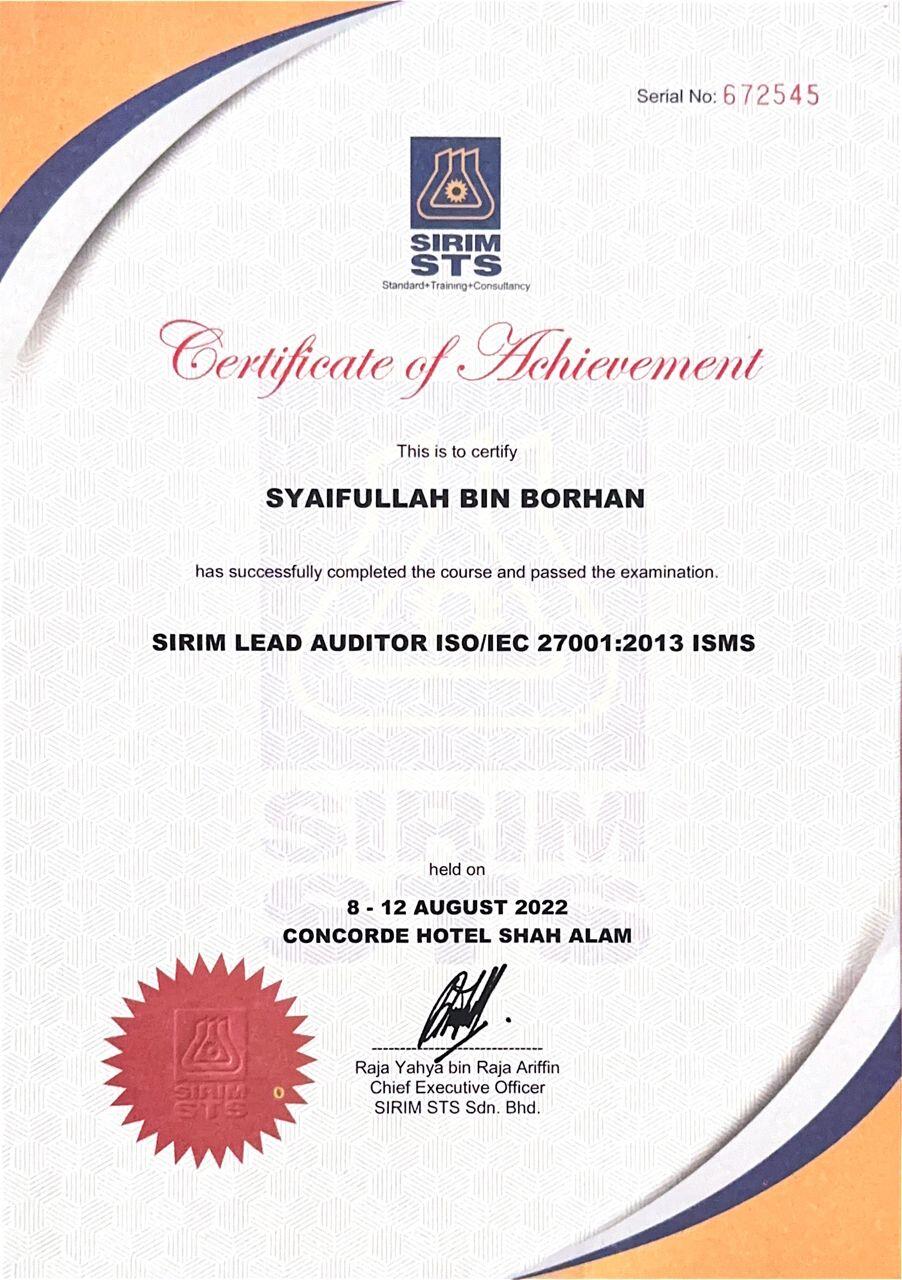 CICT UniMAP is certified from SIRIM and IQNET in implementing Information Security Management Systems